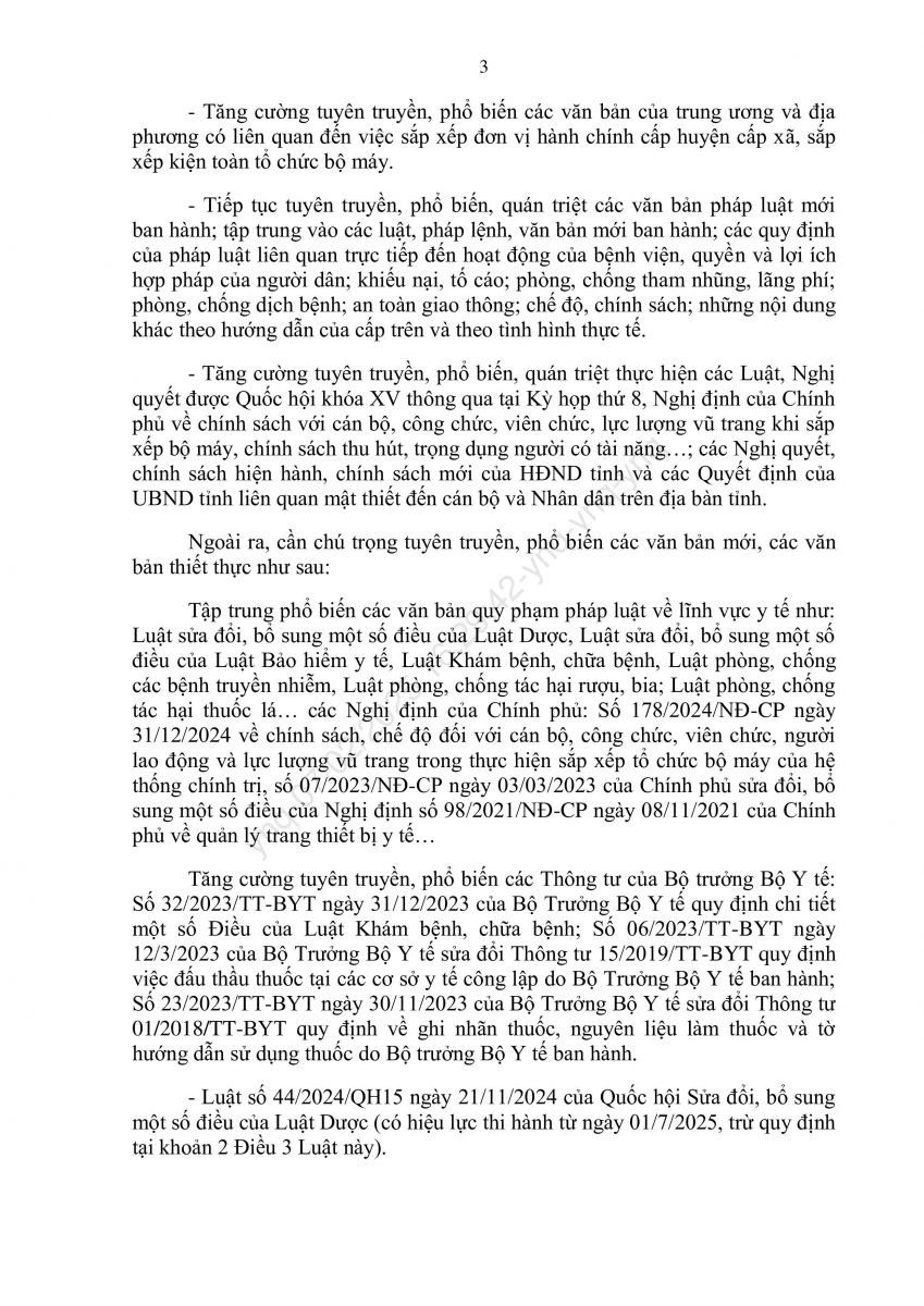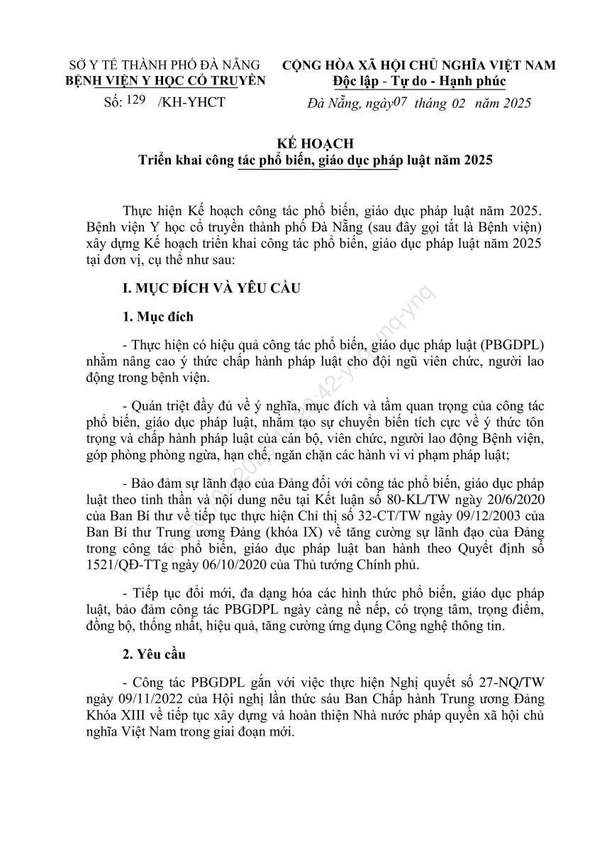 KH-YHCT 129/ KẾ HOẠCH TRIỂN KHAI CÔNG TÁC PHỔ BIẾN, GIÁO DỤC PHÁP LUẬT NĂM 2025