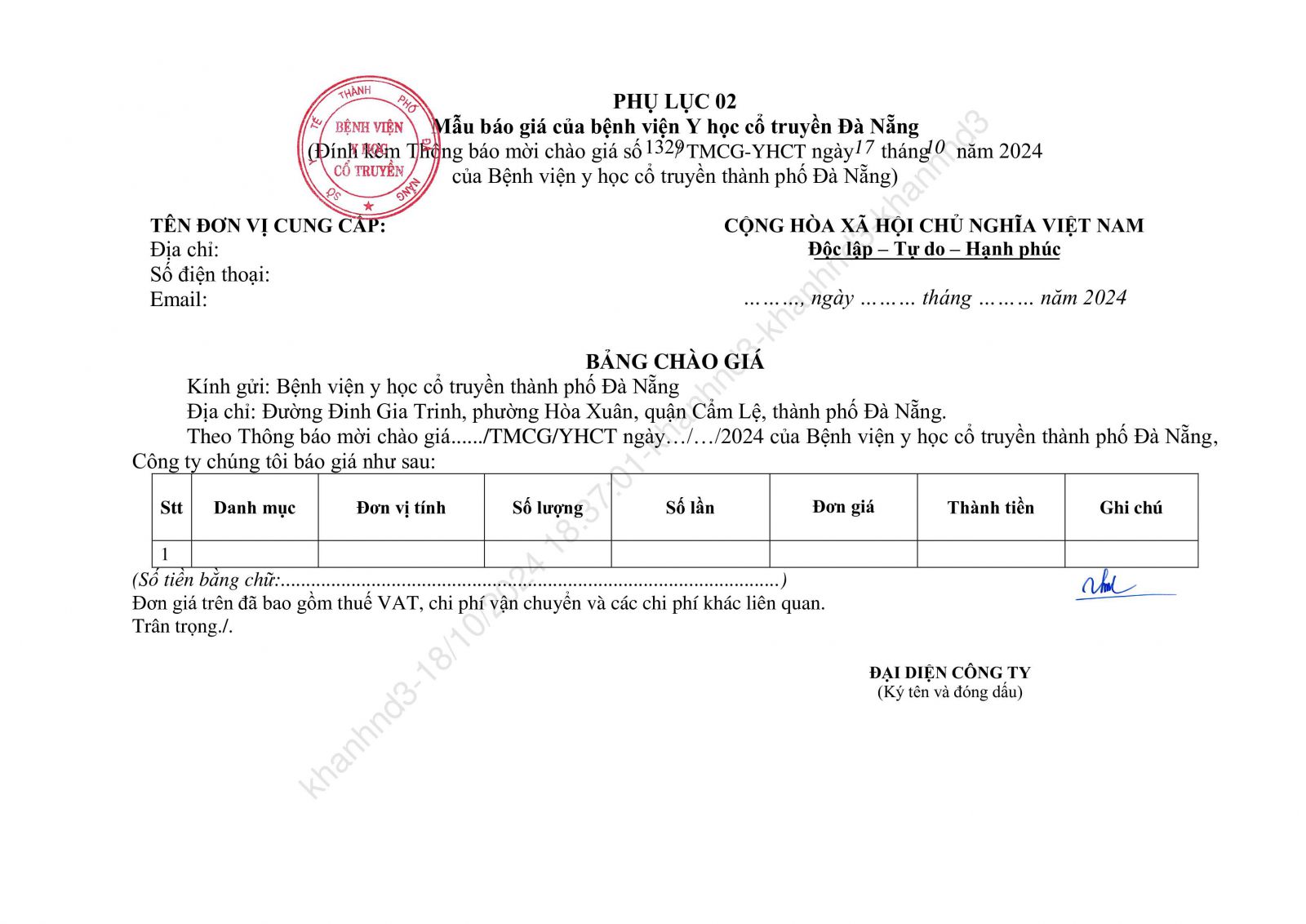 TM 1347 VỀ VIỆC CHÀO GIÁ TÔN, XÀ GỒ LỢP MÁI NHÀ D 51 TRẦN QUỐC TOẢN – BỆNH VIỆN Y HỌC CỔ TRUYỀN ĐÀ NẴNG