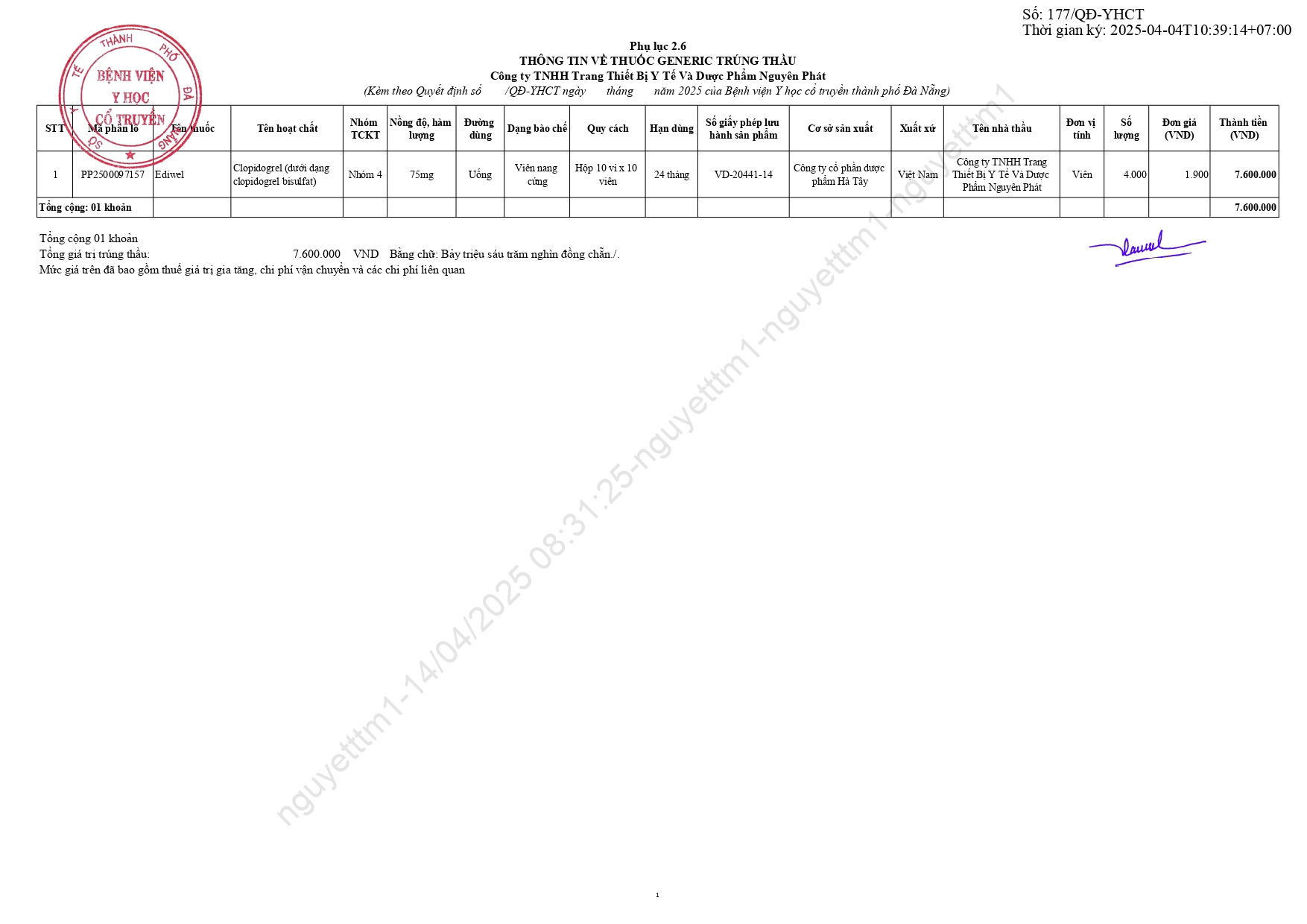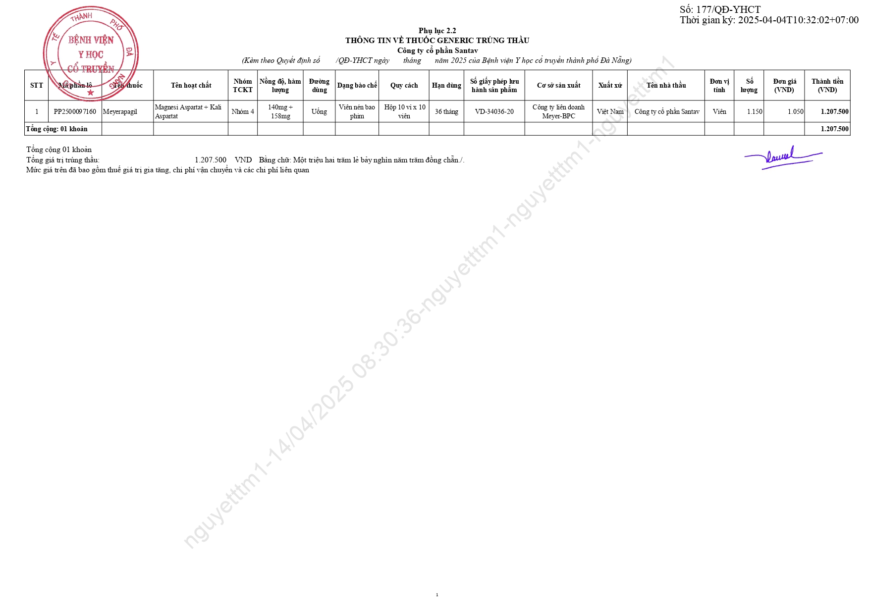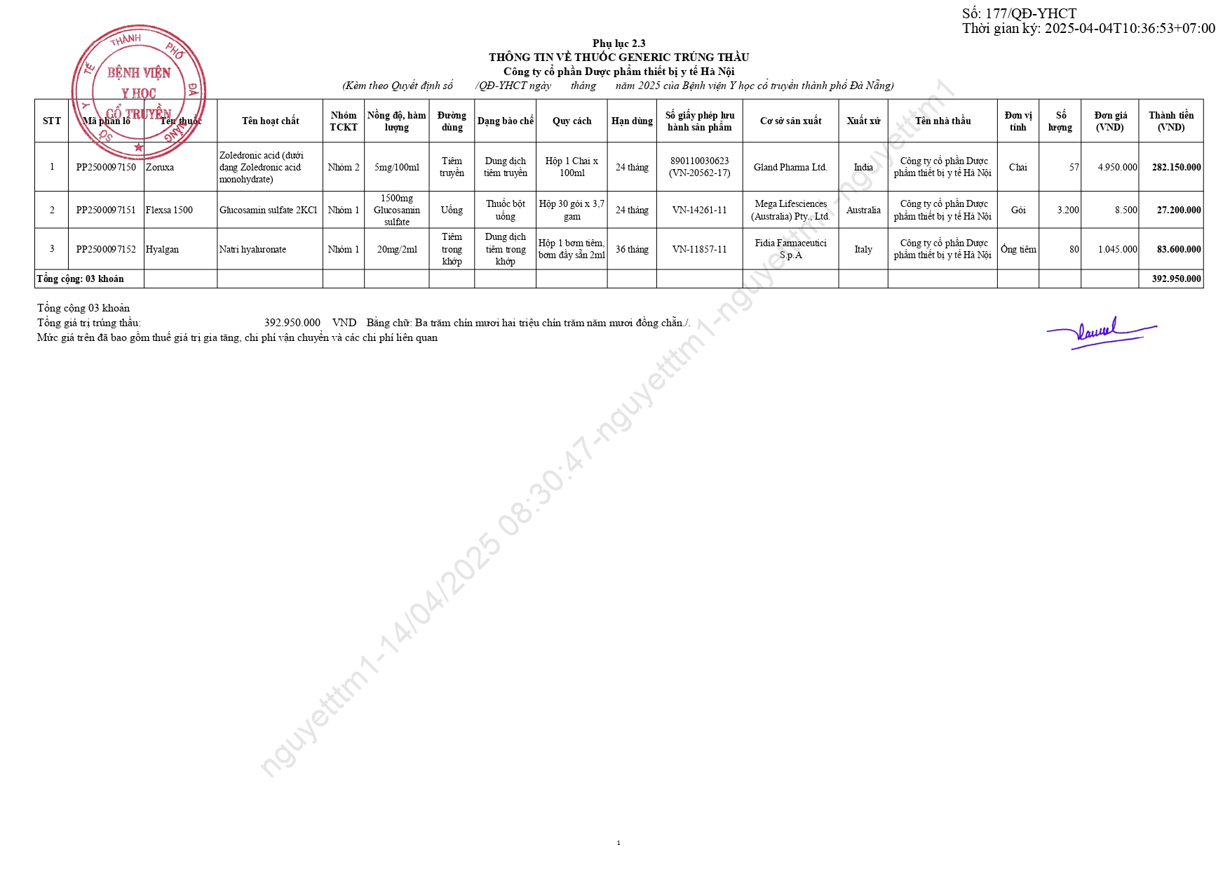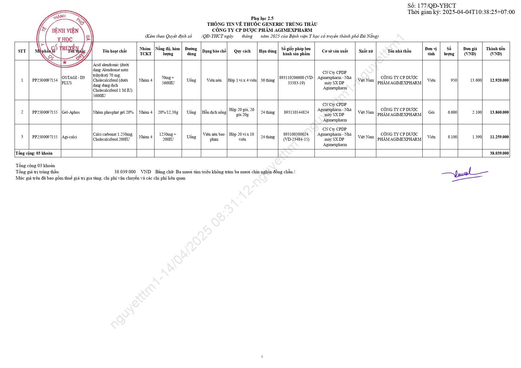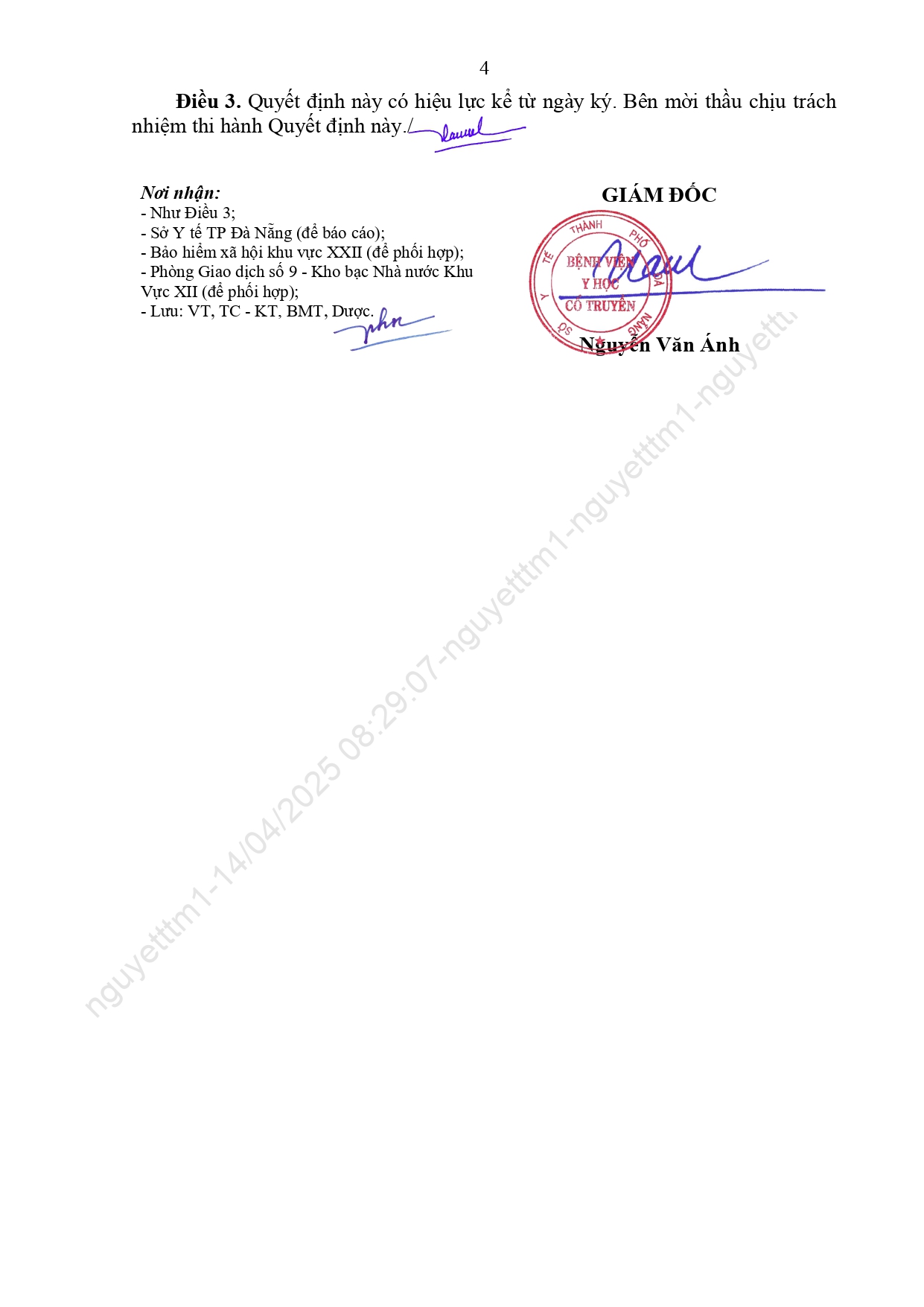 VỀ VIỆC PHÊ DUYỆT KẾT QUẢ LỰA CHỌN NHÀ THẦU GÓI THẦU CUNG CẤP BỔ SUNG THUỐC GENERIC NĂM 2025 CHO BỆNH VIỆN Y HỌC CỔ TRUYỀN THÀNH PHỐ ĐÀ NẴNG THUỘC KẾ HOẠCH LỰA CHỌN NHÀ THẦU DỰ ÁN, DỰ TOÁN MUA SẮM BỔ SUNG THUỐC GENERIC NĂM 2025 CHO BỆNH VIỆN Y HỌC CỔ TRUYỀN THÀNH PHỐ ĐÀ NẴNG THUỘC DỰ ÁN/DỰ TOÁN MUA SẮM BỔ SUNG THUỐC GENERIC NĂM 2025